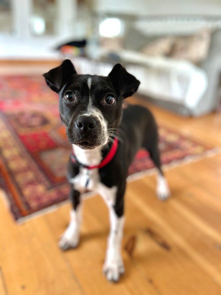 Meet Bluebell, a 6-month old Australian Cattle Dog mix from Alabama. She is a big sweetie pie and is on the calmer and smaller side of her breed. She has beautiful white and black patterning in her coat and charming speckles on her nose. Her ears flop over making her face just that much more beautiful. She is great with big dogs, puppies, you name it, and loves to play in the yard with them. She is very observant and wise for her young years, taking in her environment and getting to know all the pups and people. She is great at learning new things because it means interacting with you and she is happy snuggling up on the couch afterwards. And just wait until she gazes at you adoringly with her big brown eyes - your heart will melt. She is still young, so she will need some training (just like any young pup does). With a little time and patience from you she will learn in no time. She was recently living in a home, so she is familiar with a home environment. We expect her to be 30-40lbs fully grown. Bluebell is eager and ready to be a part of your family!